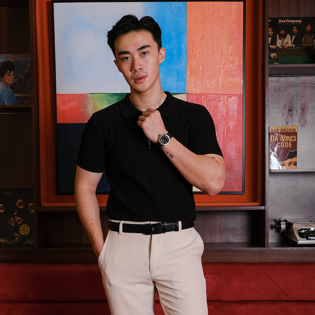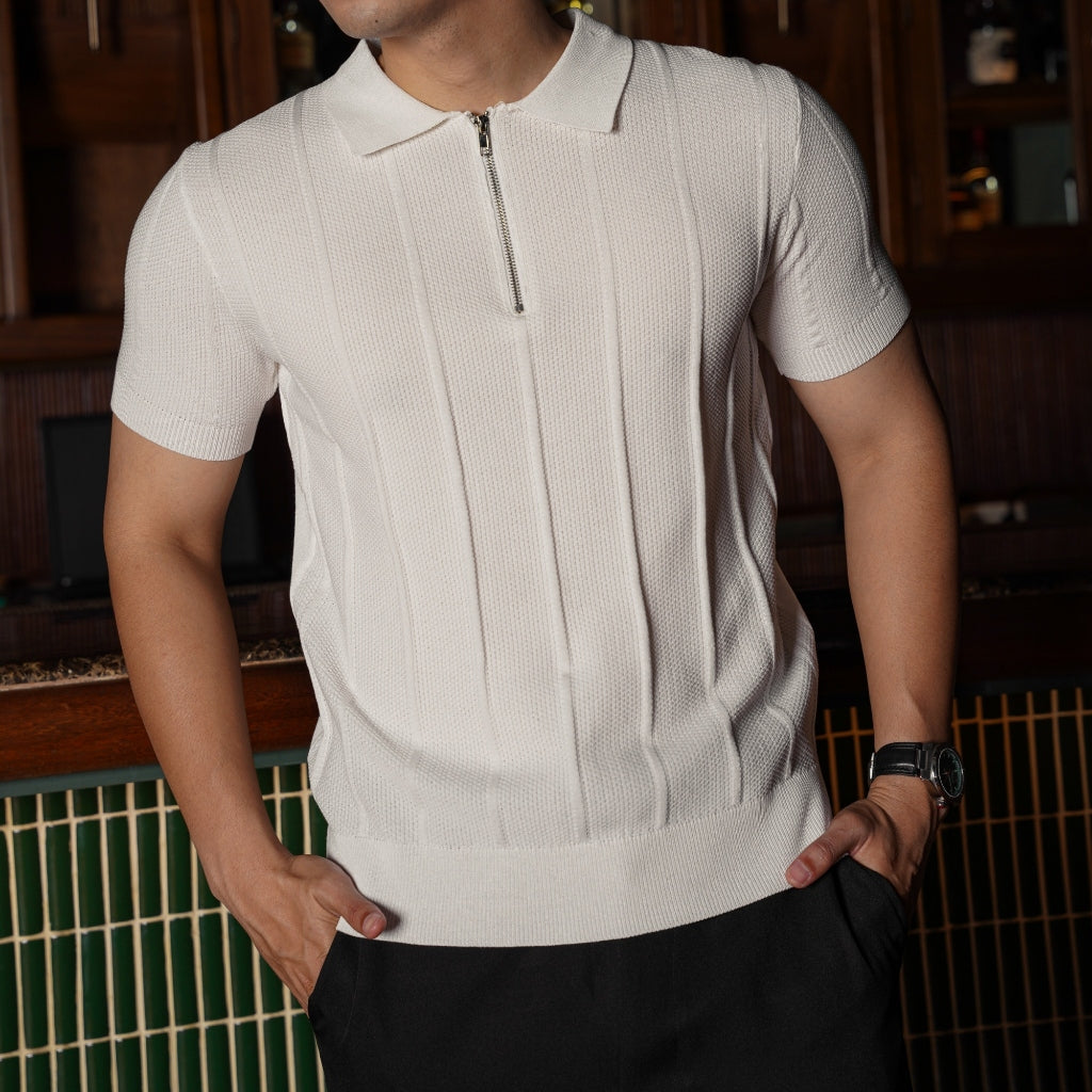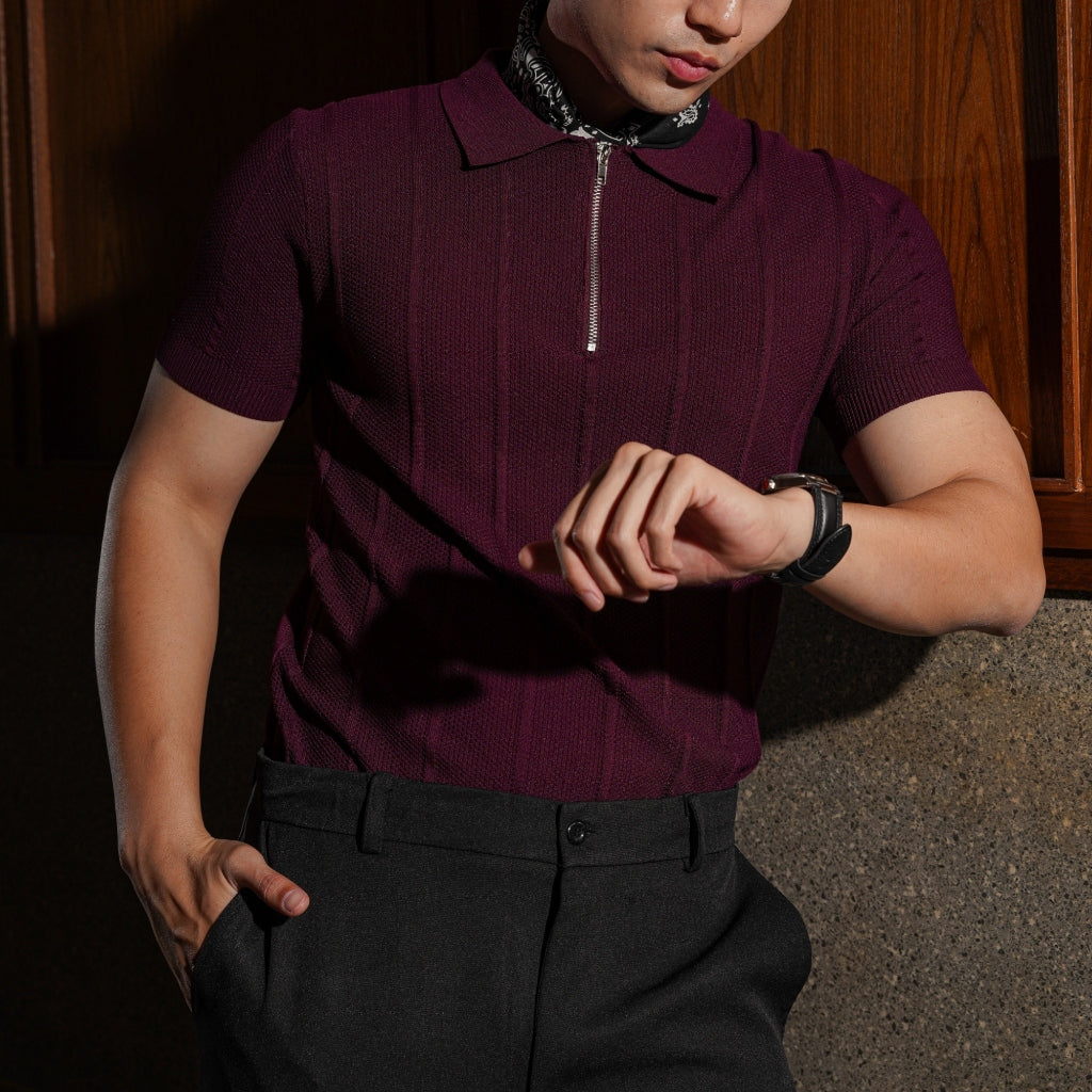 Menghadirkan tampilan smart-casual yang modern. Desain half-zip pada kerah serta pleats vertikal memberikan kesan lebih refined, menjadikannya pilihan sempurna untuk tampilan rapi namun tetap santai.