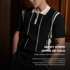 Menawarkan tampilan yang lebih bold dengan kombinasi warna kontras dan garis vertikal yang clean. Detail half-zip pada bagian kerah memberikan sentuhan modern, menjadikan Gafoy Stripe Upper Zip Polo ini pilihan tepat untuk gaya smart casual yang terlihat effortless namun tetap stylish.