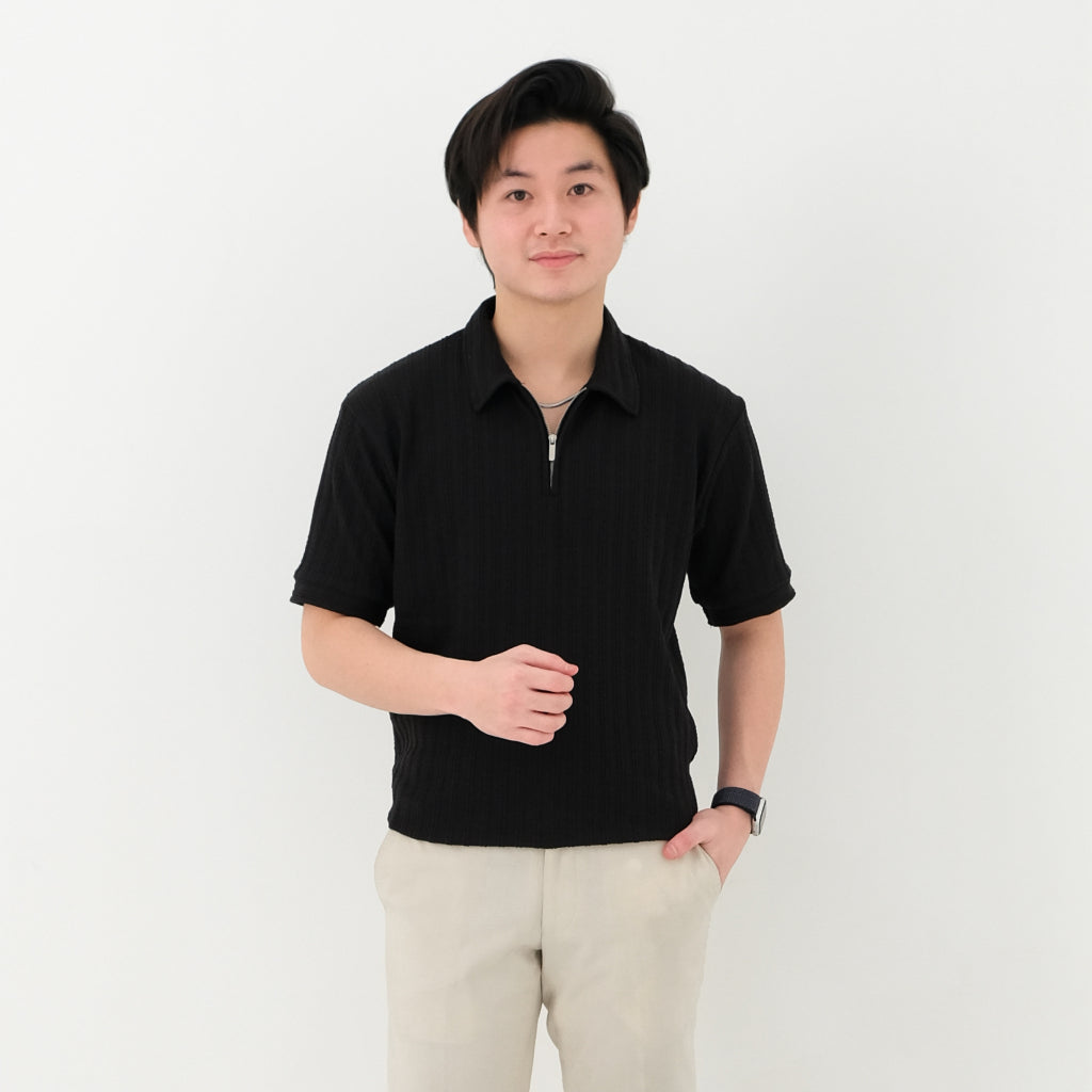 Polo dengan bahan Premium Knit yang lembut dan ringan. Desain polo klasik dengan bahan knit yang memiliki detail rajutan yang unik menambah kesan stylish dan modern. Terdapat zipper di bagian dada yang membuat tampilan lebih casual dan dapat di-styling dengan berbagai cara. Cocok untuk acara formal hingga casual, dan mudah dipadukan dengan berbagai jenis bawahan.