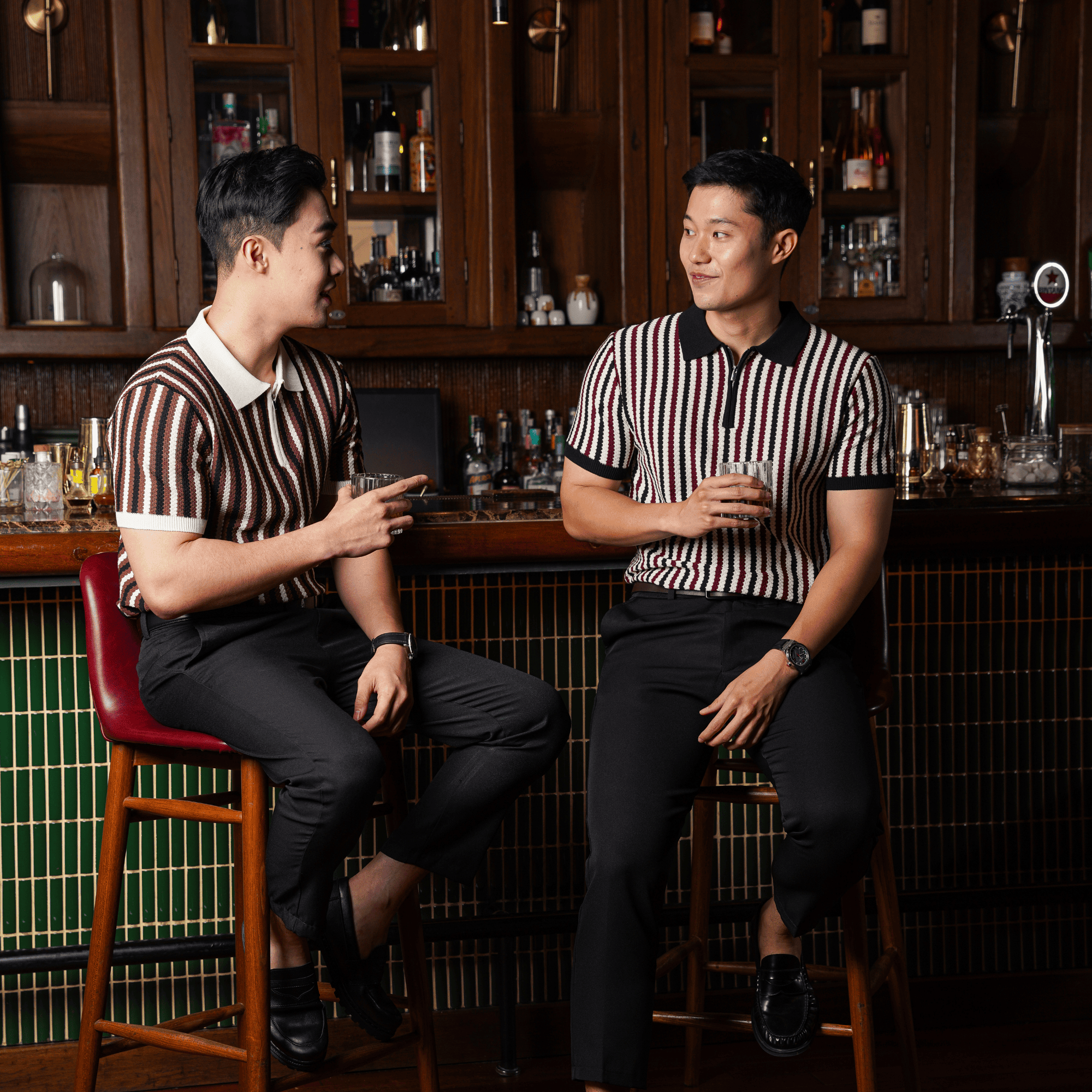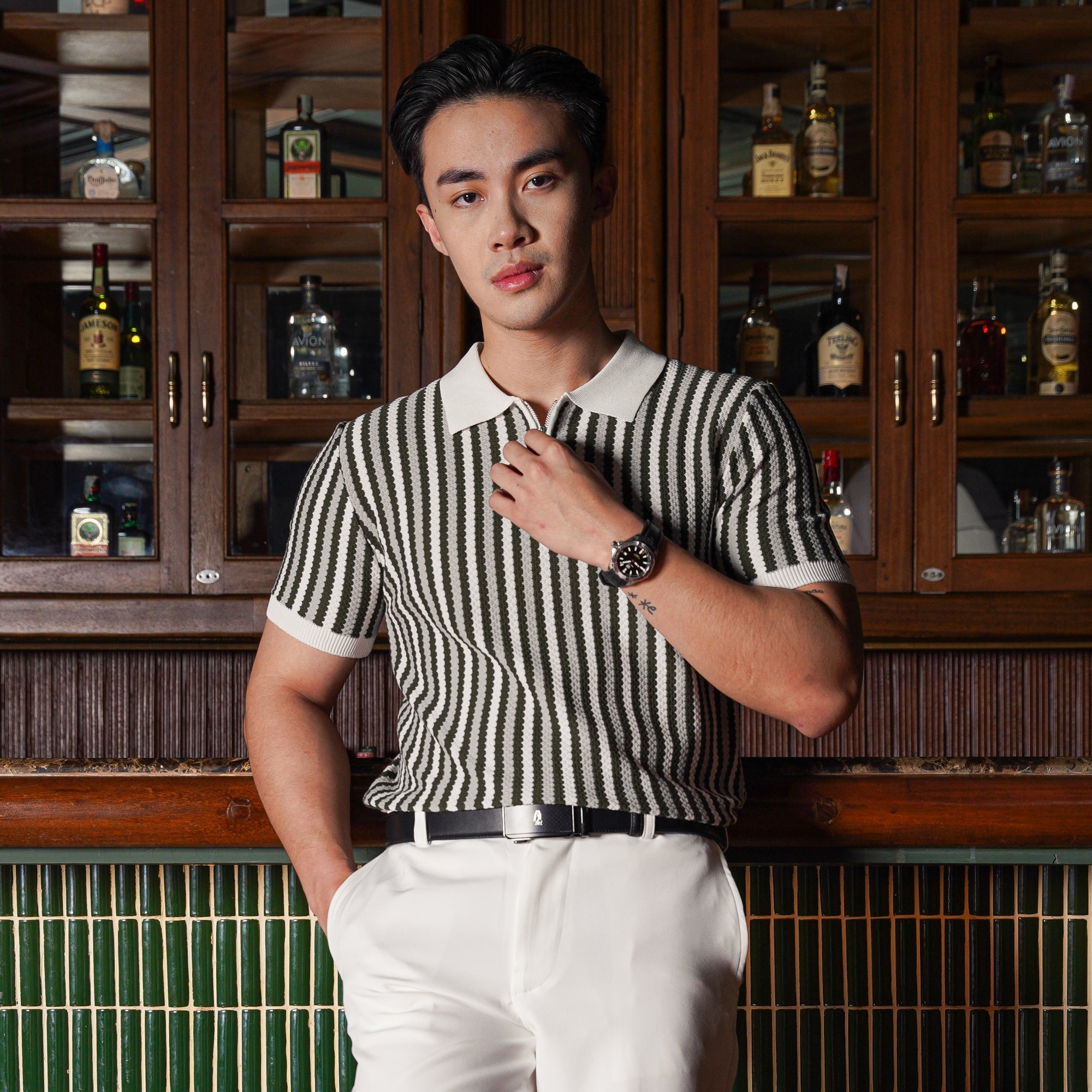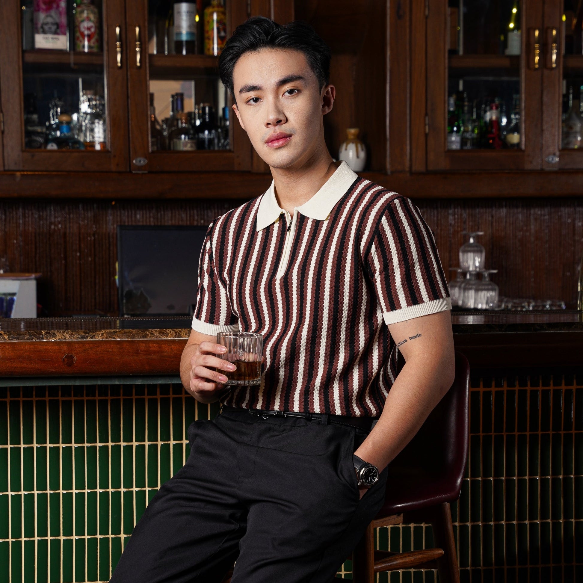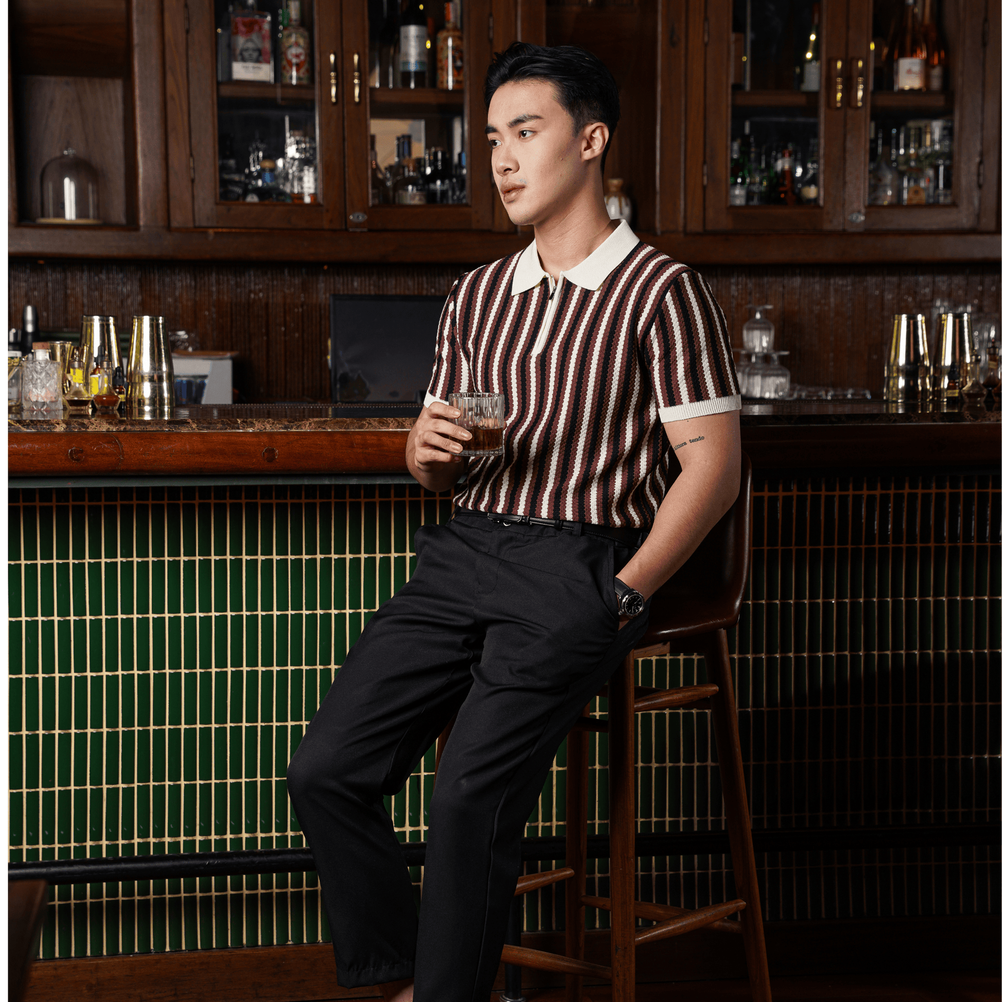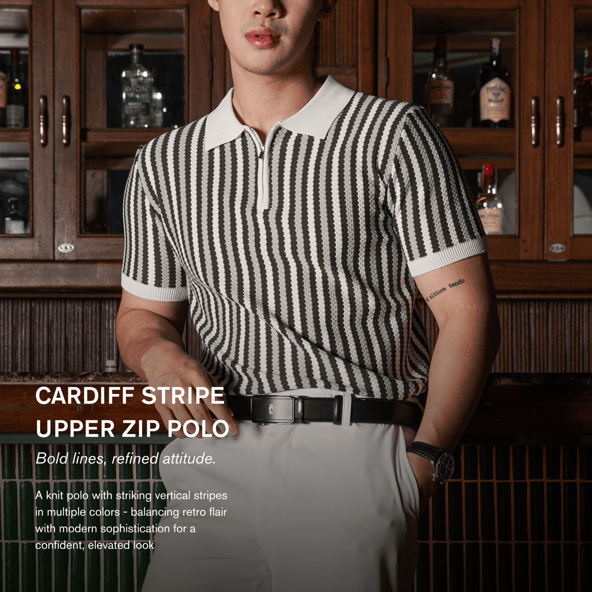 Kombinasi berani antara gaya retro dan sentuhan modern. Didesain dengan stripe vertikal multicolor yang menciptakan siluet tubuh lebih bidang dan menarik perhatian, polo ini memberi tampilan unik tanpa mengorbankan kesan sophisticated yang cocok untuk acara kasual maupun semi-formal.