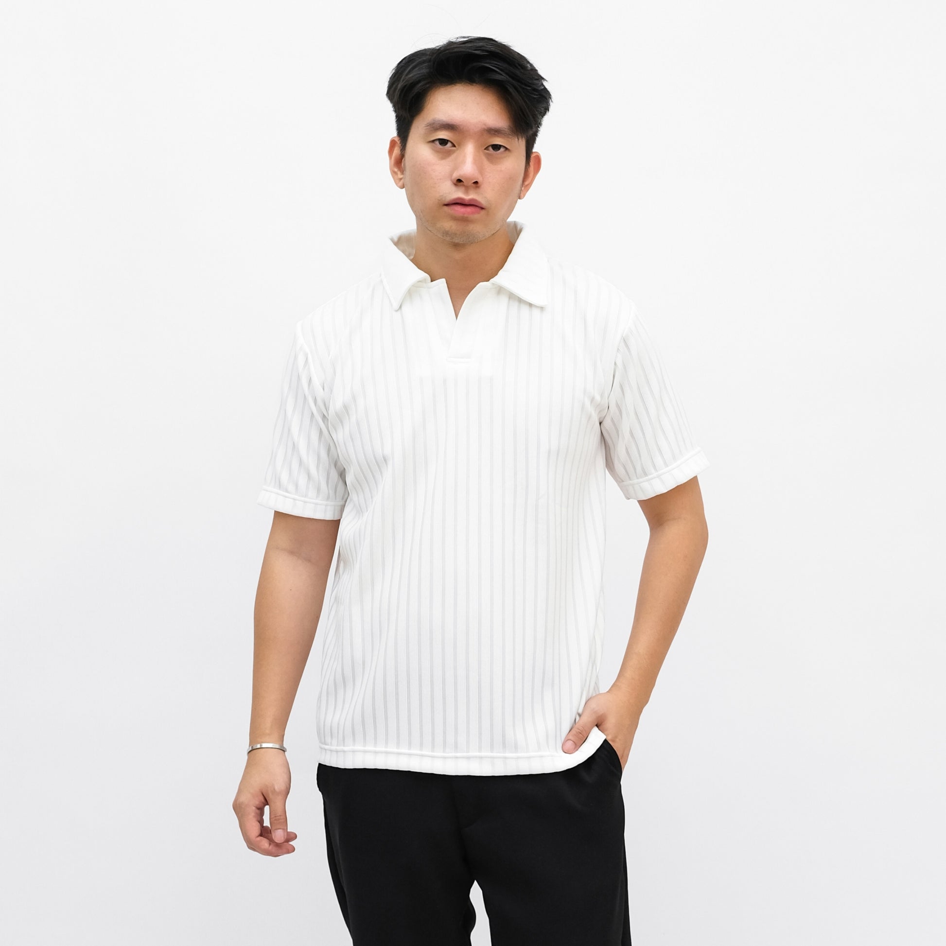 Kemeja polo cutting oversized dengan bahan Premium Knit yang ringan dan lembut di kulit. Desain klasik modern dengan sentuhan tekstur pada bahan yang menyegarkan, menambah kepercayaan diri dan tampilan maskulin.