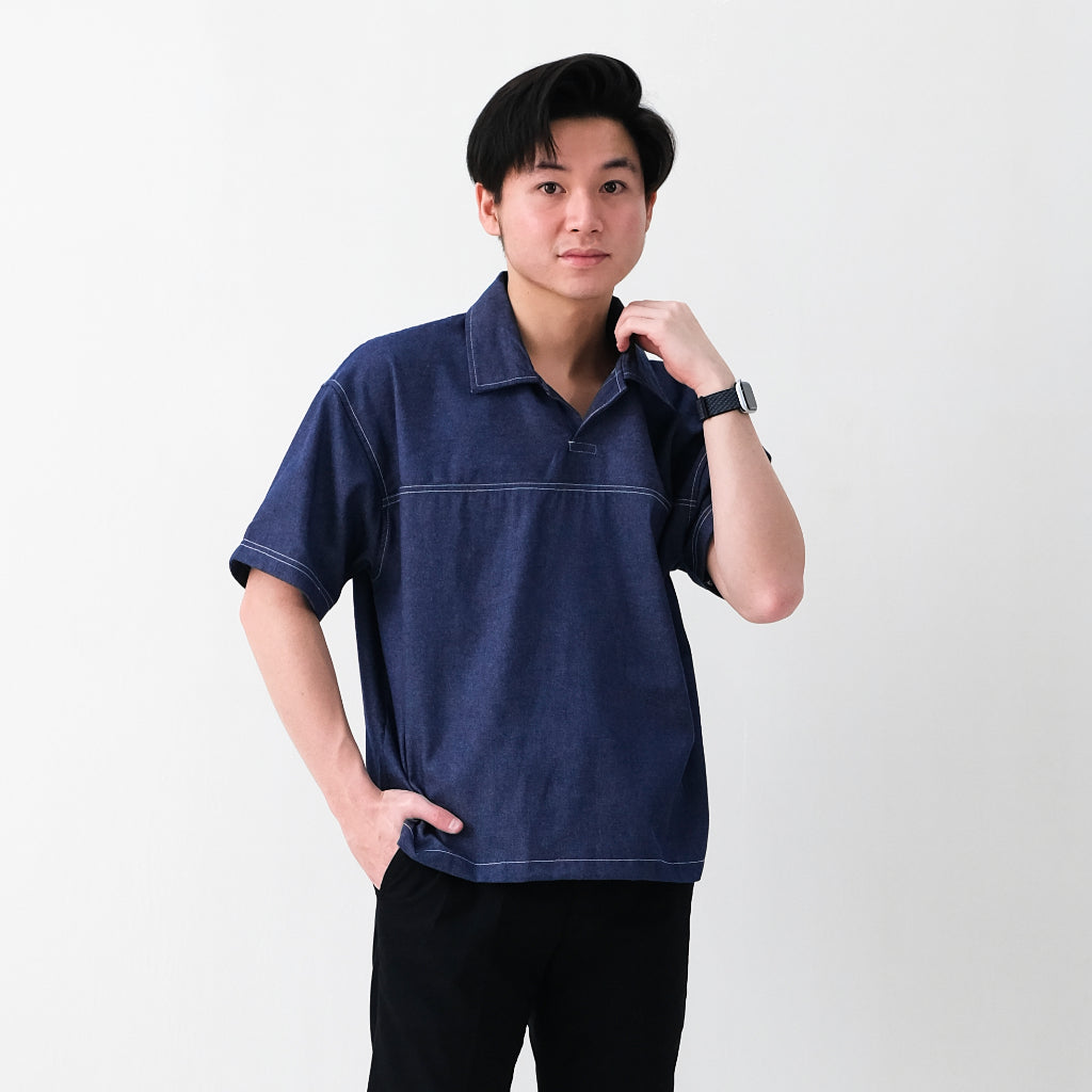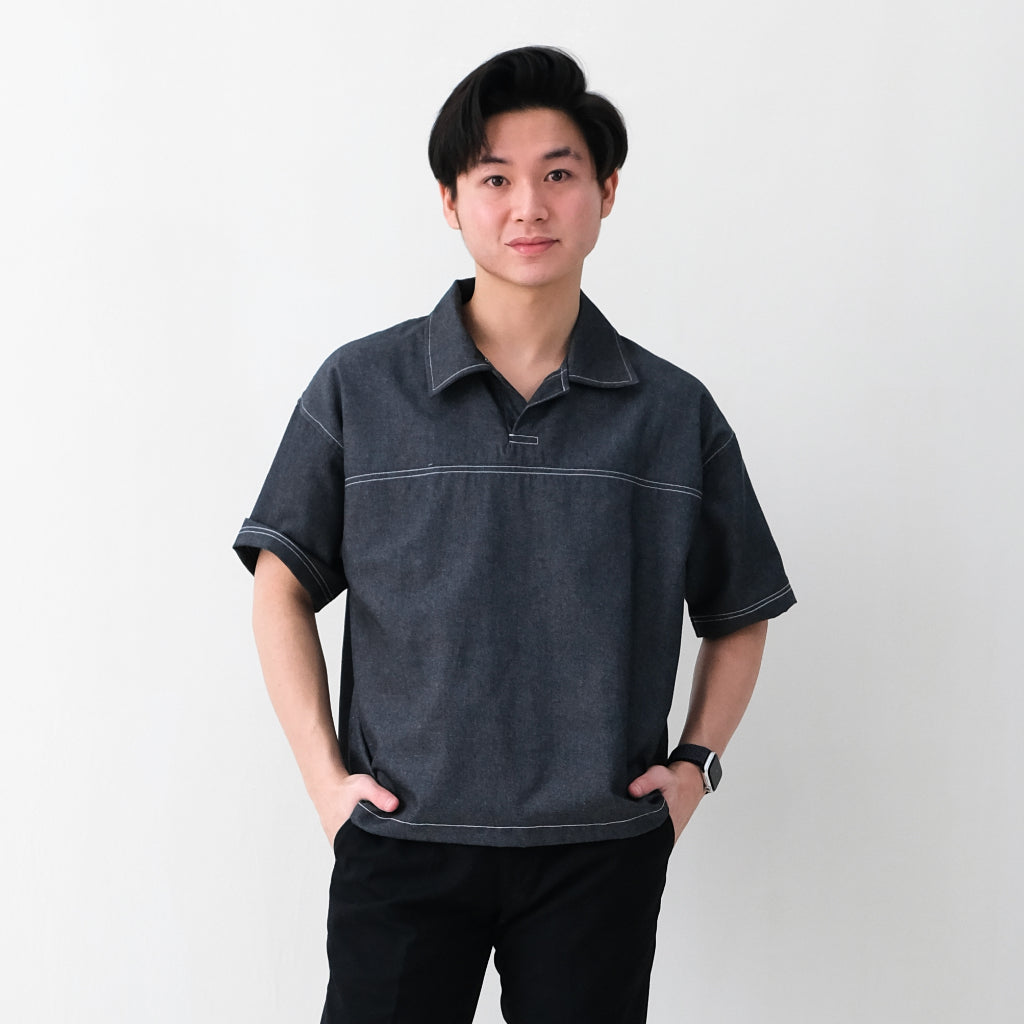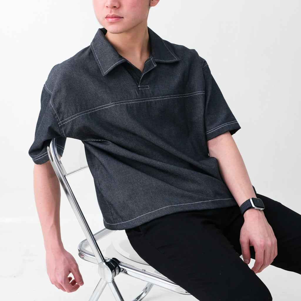 DOM BOXY DENIM POLO SHIRT