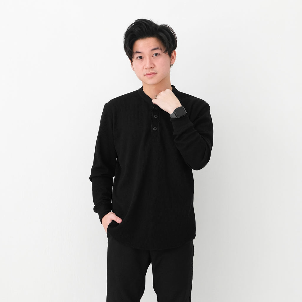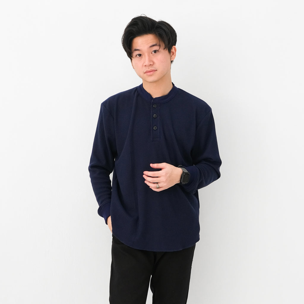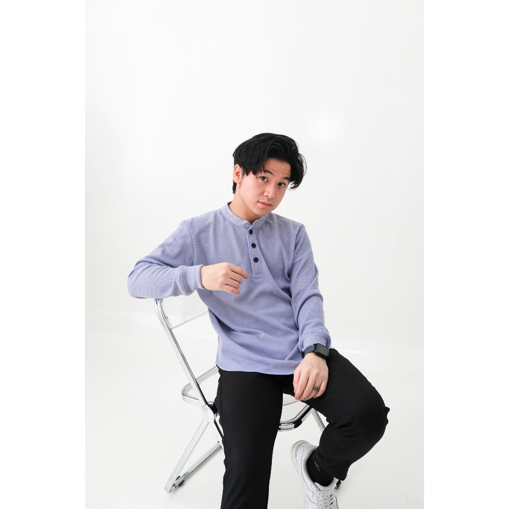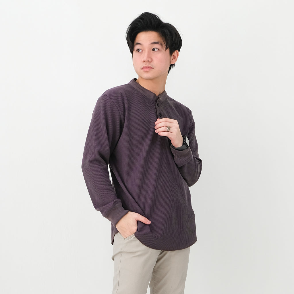 Henley Long Waffle Knit Shirt - Sanvanina.Kaos Polos model Henley berbahan knit yang bertekstur waffle, tahan panas, ...