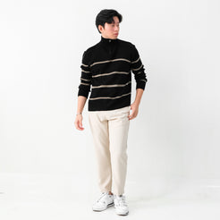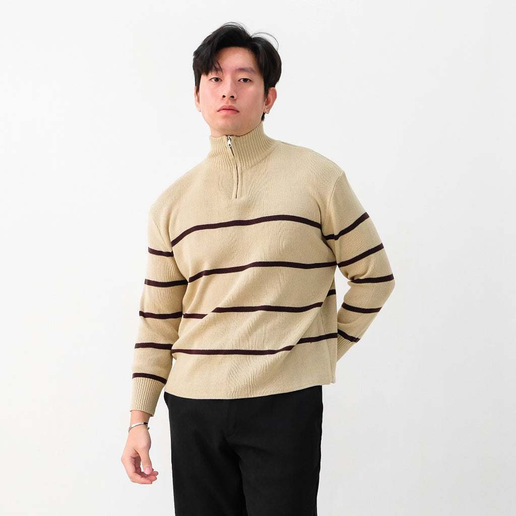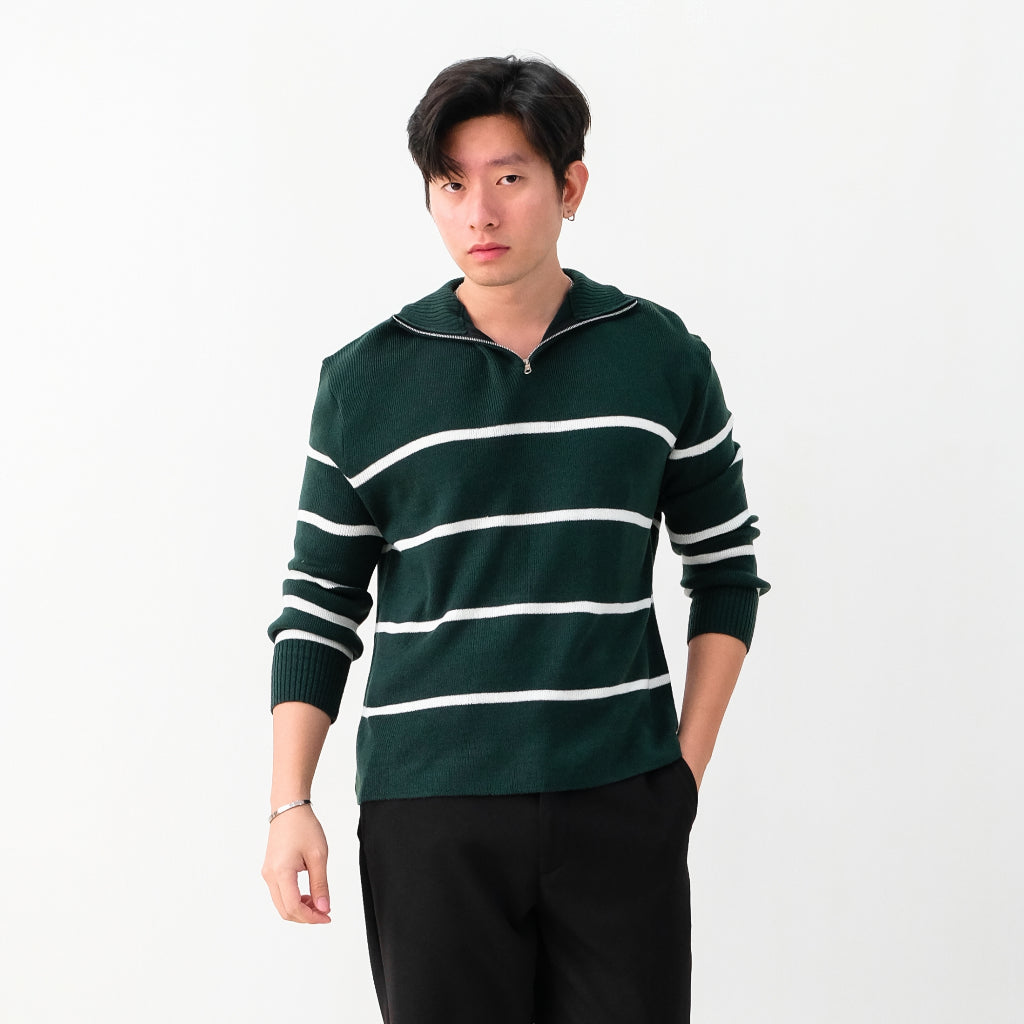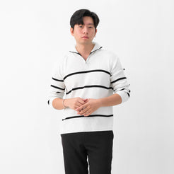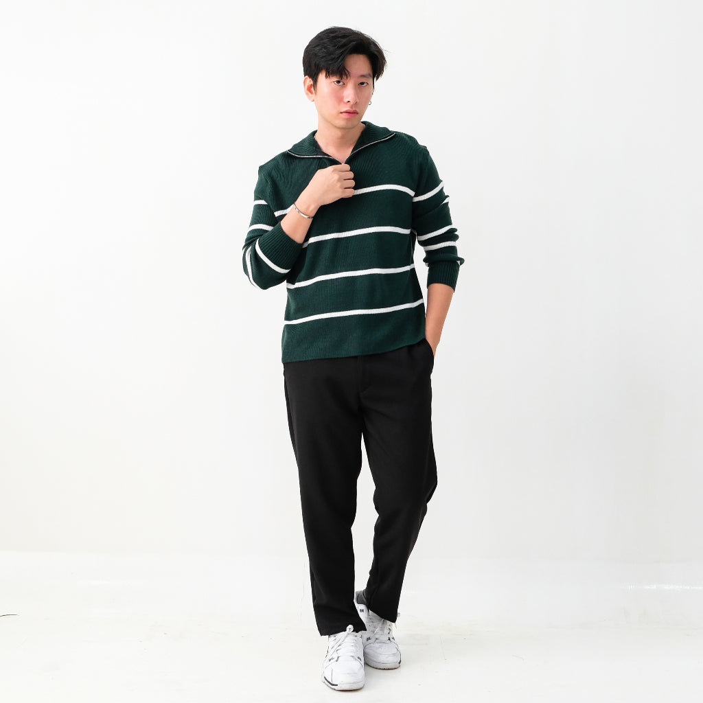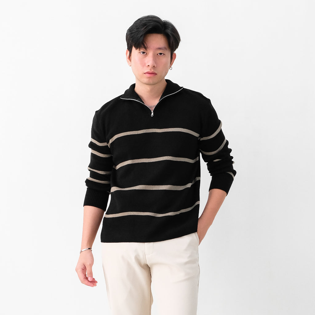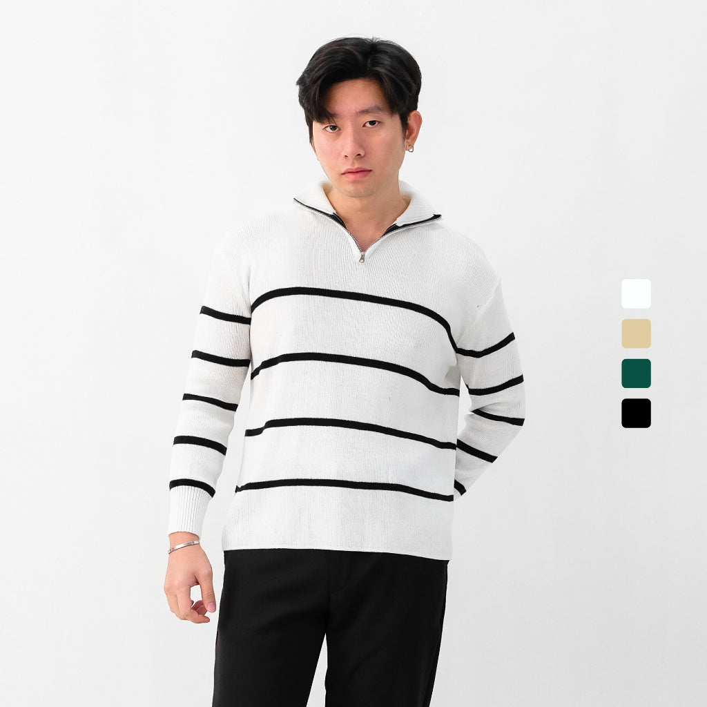 Atasan multifungsi yang menggunakan bahan Premium Stripes Knit yang lembut dan anti-lecek sehingga cocok digunakan sehari-hari dan dibawa bepergian. Dilengkapi zipper dibagian kerah untuk look yang lebih sporty dan modern, sehingga menambah rasa percaya diri dan tampilan maskulin.