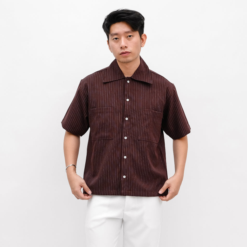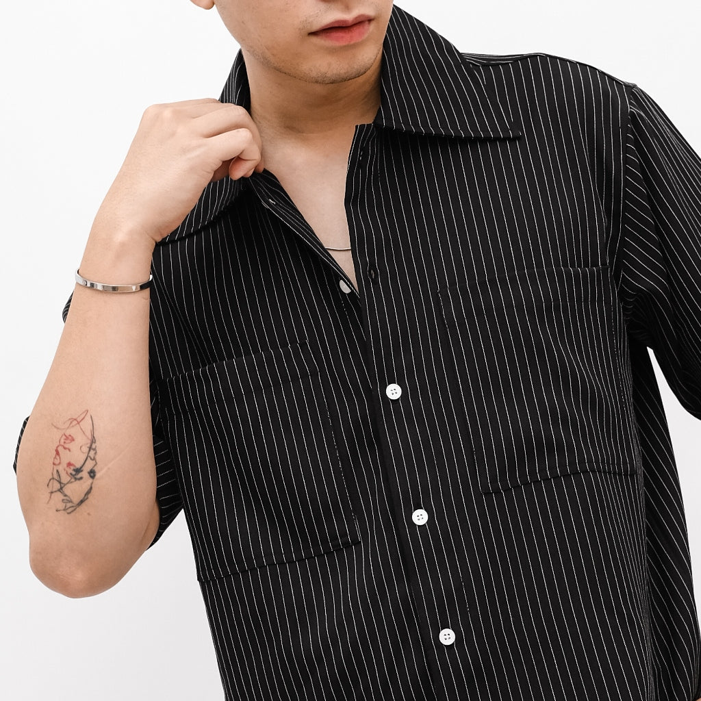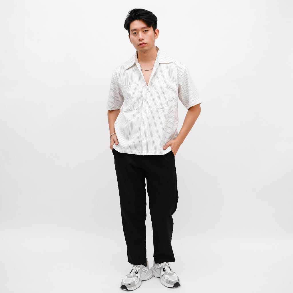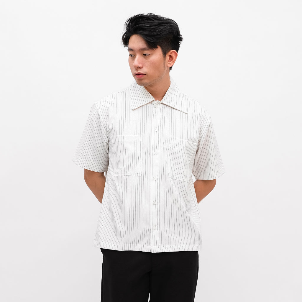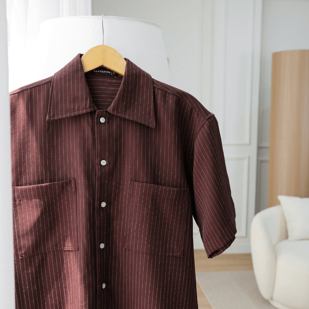 Hadir sebagai kemeja lengan pendek dengan motif garis vertikal yang memberikan kesan modern, rapi...