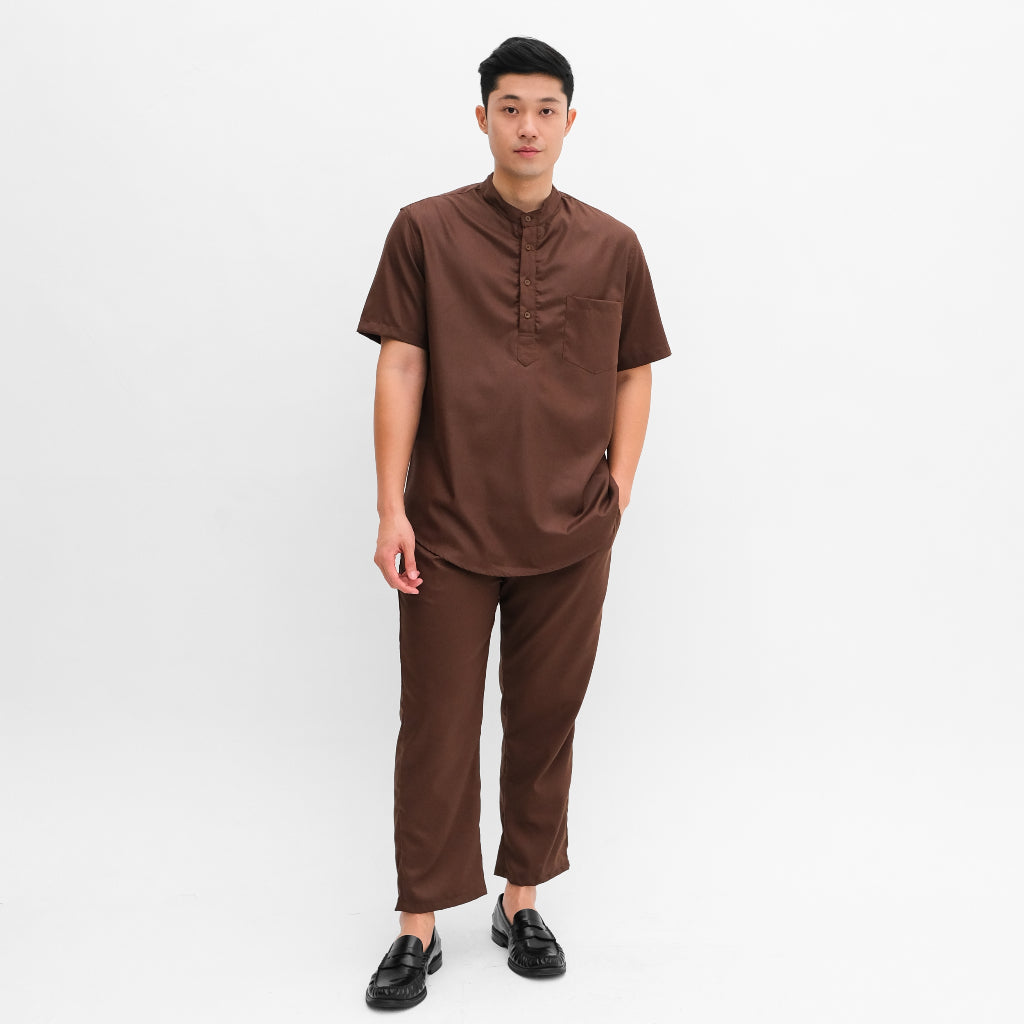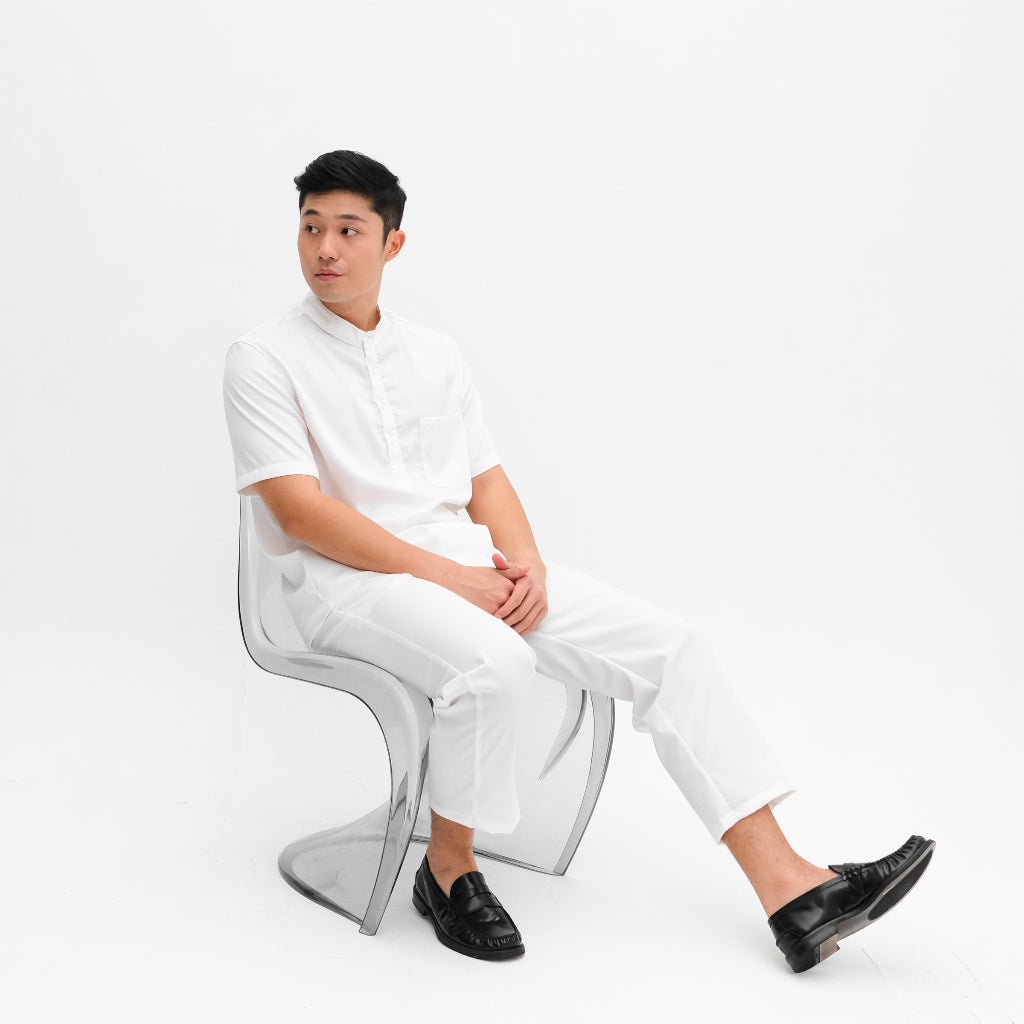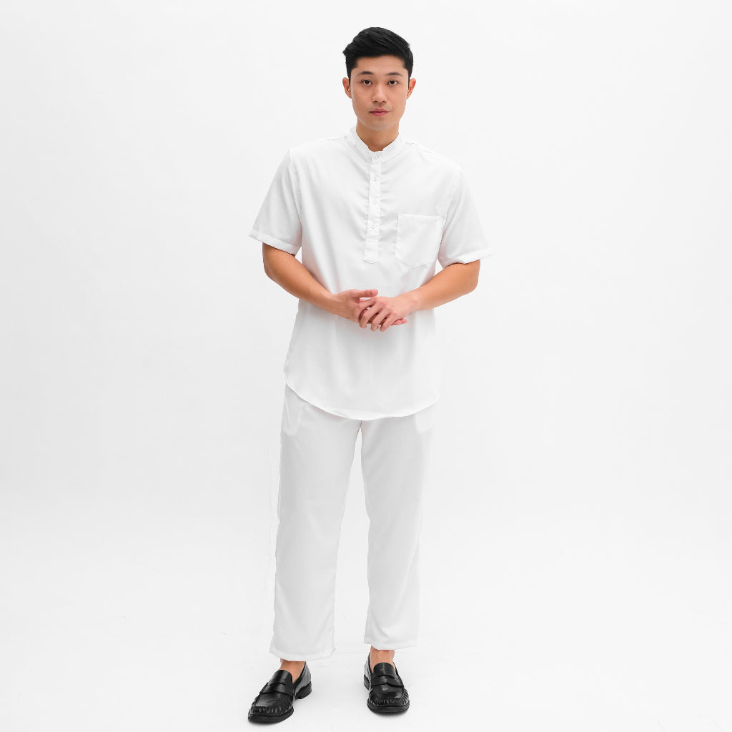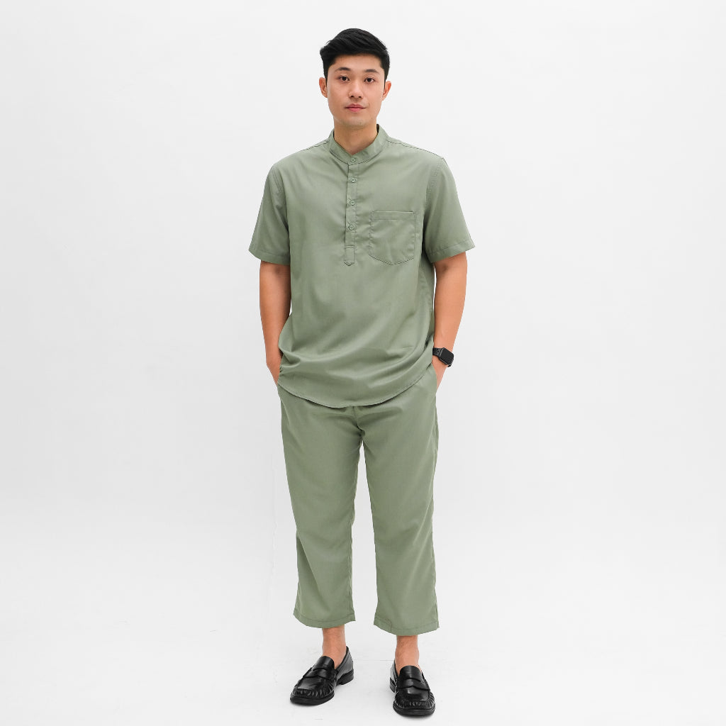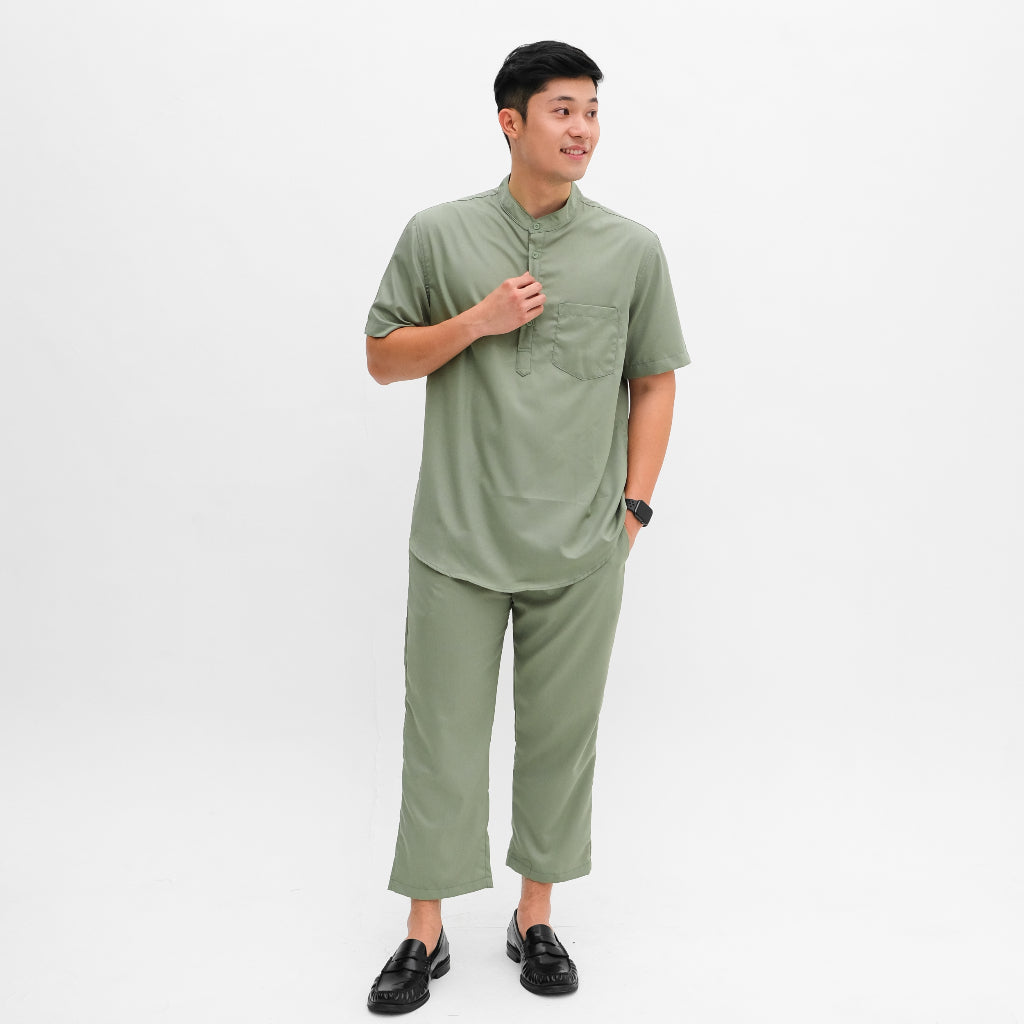 Setelan kemeja kurta lengan pendek yang terbuat dari Premium Cotton Toyobo yang kokoh namun ringan dan adem. Sudah termasuk atasan kurta dengan kerah Shanghai dan celana panjang dengan warna yang sama. Terdapat berbagai pilihan warna yang cerah sehingga bisa membuat kamu tampil lebih percaya diri dan lebih segar di bulan Ramadan ini. Merupakan setelan praktis yang bisa kamu pakai untuk berbagai acara seperti Iftar maupun Sholat Ied.