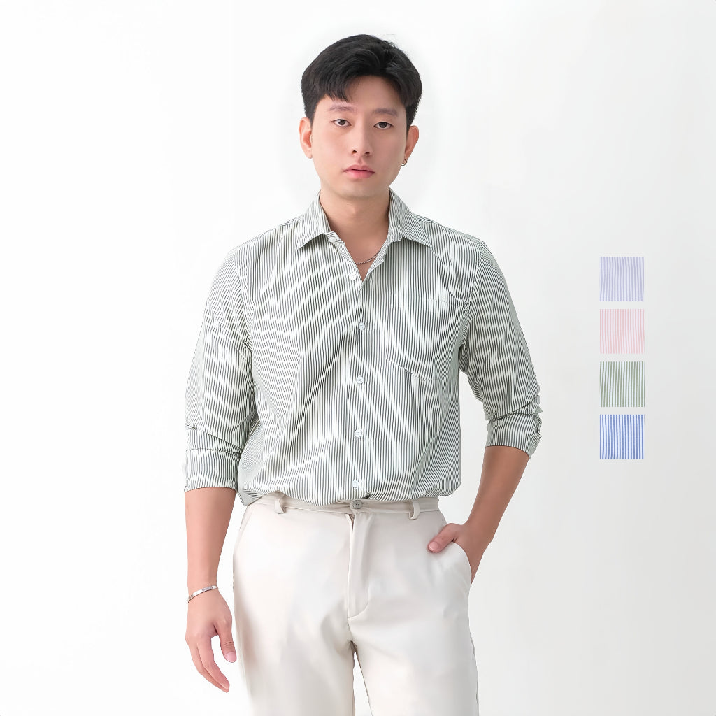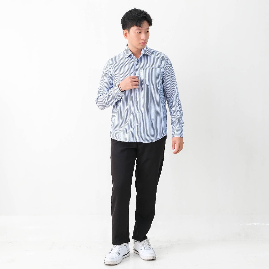 Kemeja motif garis-garis dengan cuttingSlim Fit yang menggunakan bahan Premium Stripes Cotton yang menyerap keringat, adem, dan ringan. Dipadukan dengan patternstripes yang minimalis dan modern sehingga membuat tampilan stylish, fashionable dan segar. Cocok untuk berbagai aktivitas dari formal hingga casual.