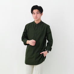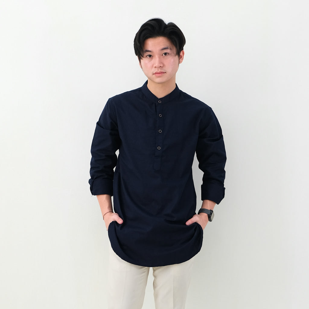 Kemeja model kurta Pakistan ini menggunakan bahan Premium Cotton Cigarette, bahan yang lembut yang membuat kamu merasa nyaman, adem, dan cocok untuk dipakai di momen Ramadan. Model kemeja kurta yang unik dan artistik, membuat tampilan yang mewah, elegan, dan fashionable. Tidak mudah kusut sehingga cocok untuk penggunaan sepanjang hari.