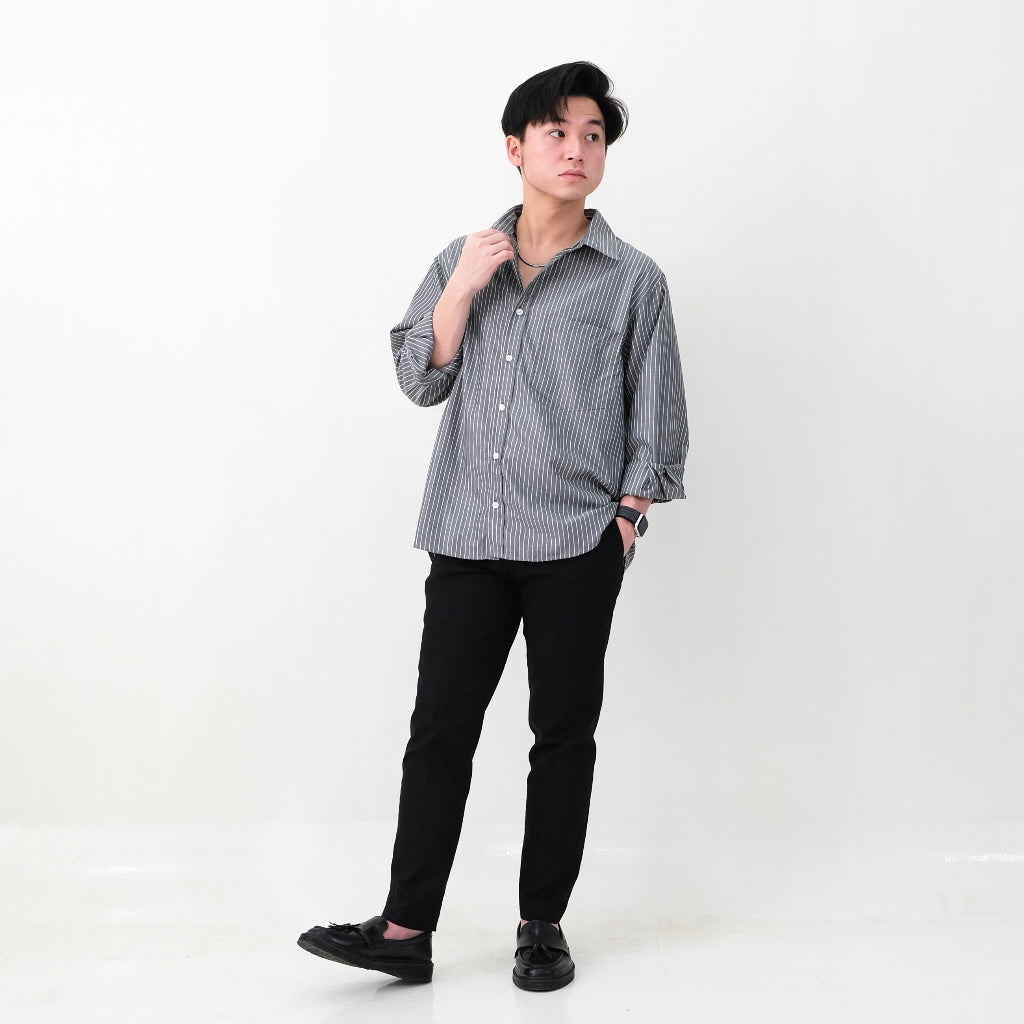 SYDNEY STRIPES OVERSIZED SHIRT . Kemeja dengan cuttingOversized yang terbuat dari bahan Premium Stripes Cotton dengan gaya Korean, memberi kesan elegan dan sleek. Motif garis-garis horizontal dengan potongan asimetris di bagian depan dan belakang membuat ilusi tubuh terlihat lebih tinggi dan ramping. Terdapat pilihan variasi warna netral dan timeless yang membuat kalian terlihat lebih fashionable.