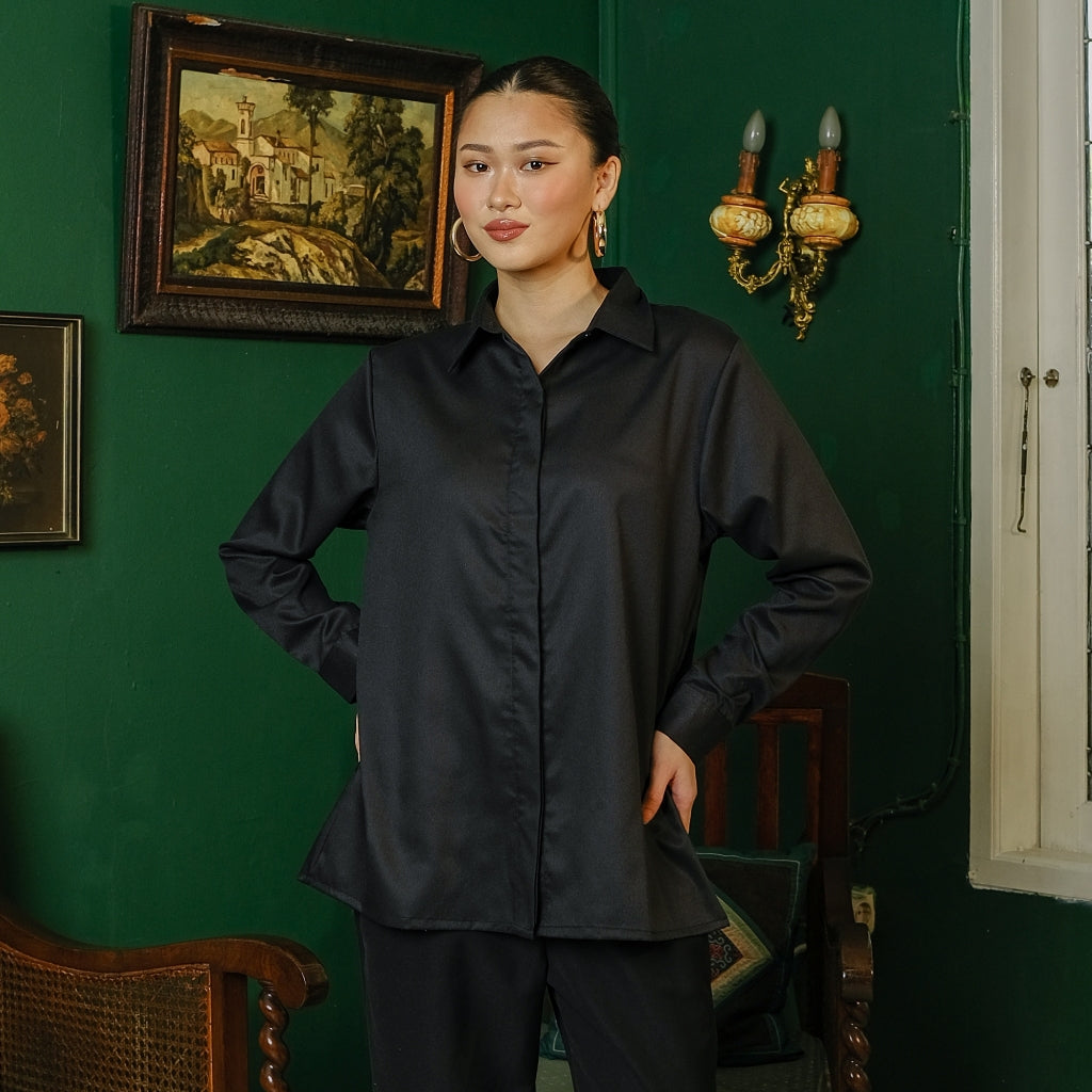 Blouse semi-tunik wanita dengan tampilan elegan, clean, dan effortless untuk menemani momen ...