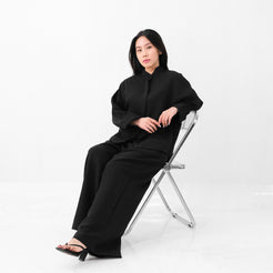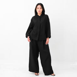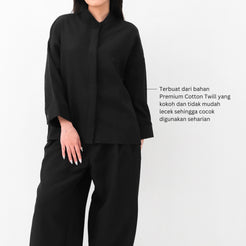 Becca Twill Set - SANVANINA Women . Set yang dibuat dari bahan Premium Cotton Twill, terdiri dari atasan kancing lengan panjang dengan model drape dan celana model kulot panjang dengan pinggang full karet. Cocok digunakan untuk berbagai acara formal maupun semi-formal, dengan potongan celana yang membuat kaki terlihat lebih jenjang dan atasan yang menghasilkan efek slimming. . Tersedia 2 varian warna: Ebony Black | Vanilla Cream . Keunggulan : - Terbuat dari bahan Premium Cotton Twill yang kokoh dan tidak mudah lecek, sehingga cocok untuk digunakan sepanjang hari - Model kancing tertutup dan kerah Shanghai yang menghasilkan tampilan lebih rapi - Pilihan warna yang netral, sehingga menghasilkan tampilan stylish dan modern namun timeless - Pinggang celana full karet dengan tali di bagian dalam yang bisa di-adjust sesuai dengan ukuran pinggang pengguna - Terdapat saku di kedua bagian samping celana, dan terdapat saku di bagian belakang celana - Potongan celana dan atasan yang loose membuat kaki terlihat lebih jenjang dan memberikan slimming effect - Dapat digunakan untuk berbagai macam acara semei-formal dan formal, serta cocok digunakan untuk outfit kantor - Mudah dipadupadankan dengan berbagai macam atasan ataupun bawahan lainnya .. Bahan : Premium Cotton Twill . Detail Ukuran Atasan: ALL SIZE Lingkar Dada : 124 cm Lingkar Ketiak : 54 cm Lingkar Lengan : 36 cm Lebar Bahu : 26 cm Panjang Lengan : 39 cm Panjang Baju : 66 cm *Toleransi: 1-2 cm