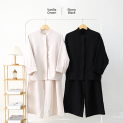 Becca Twill Set - SANVANINA Women.Set yang dibuat dari bahan Premium Cotton Twill, terdiri dari atasan kancing lengan...