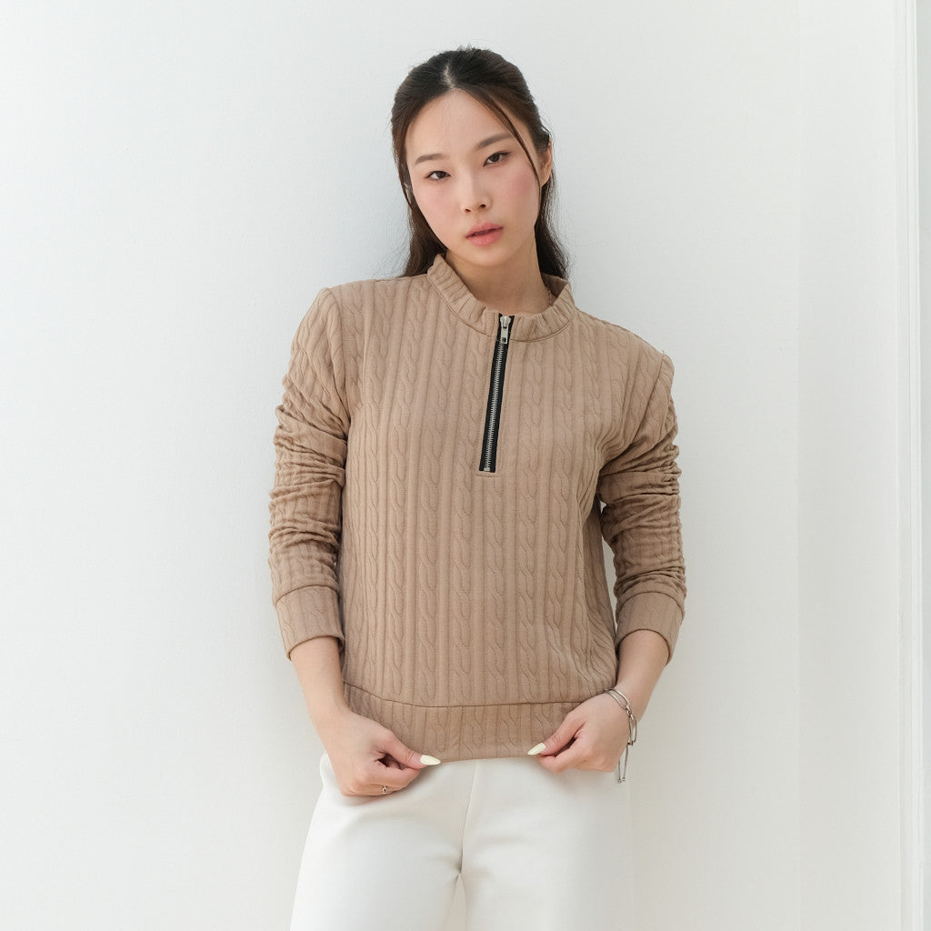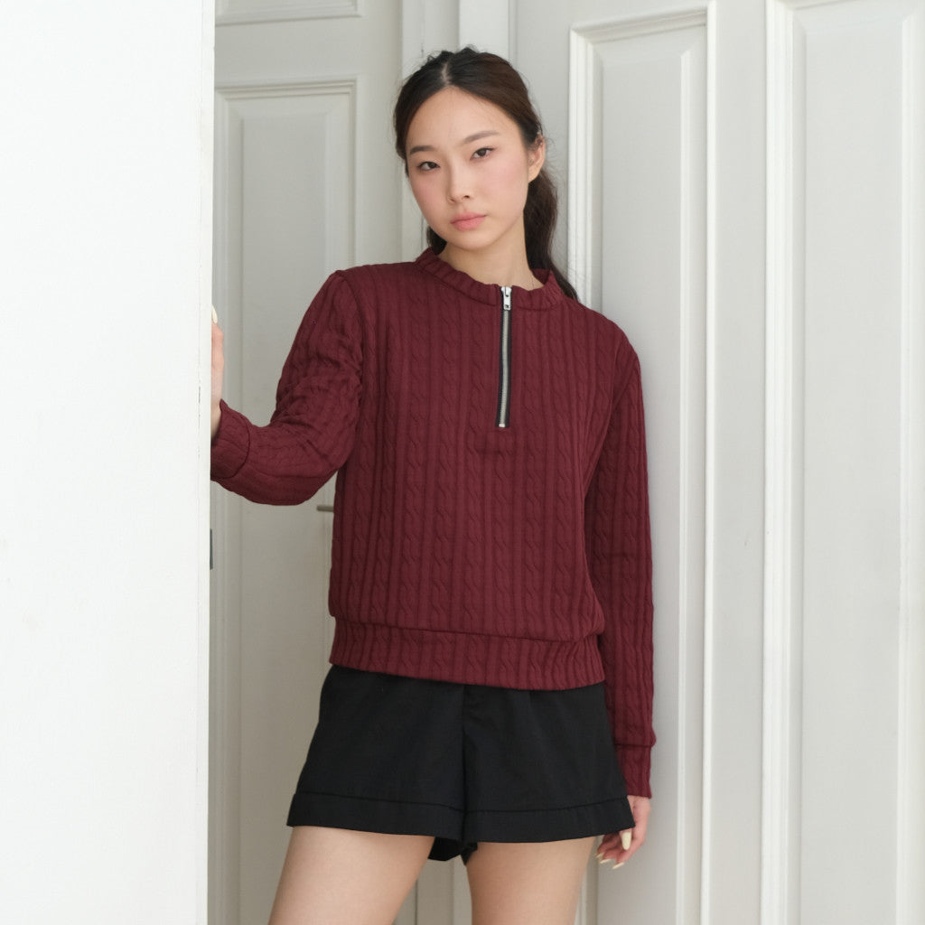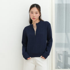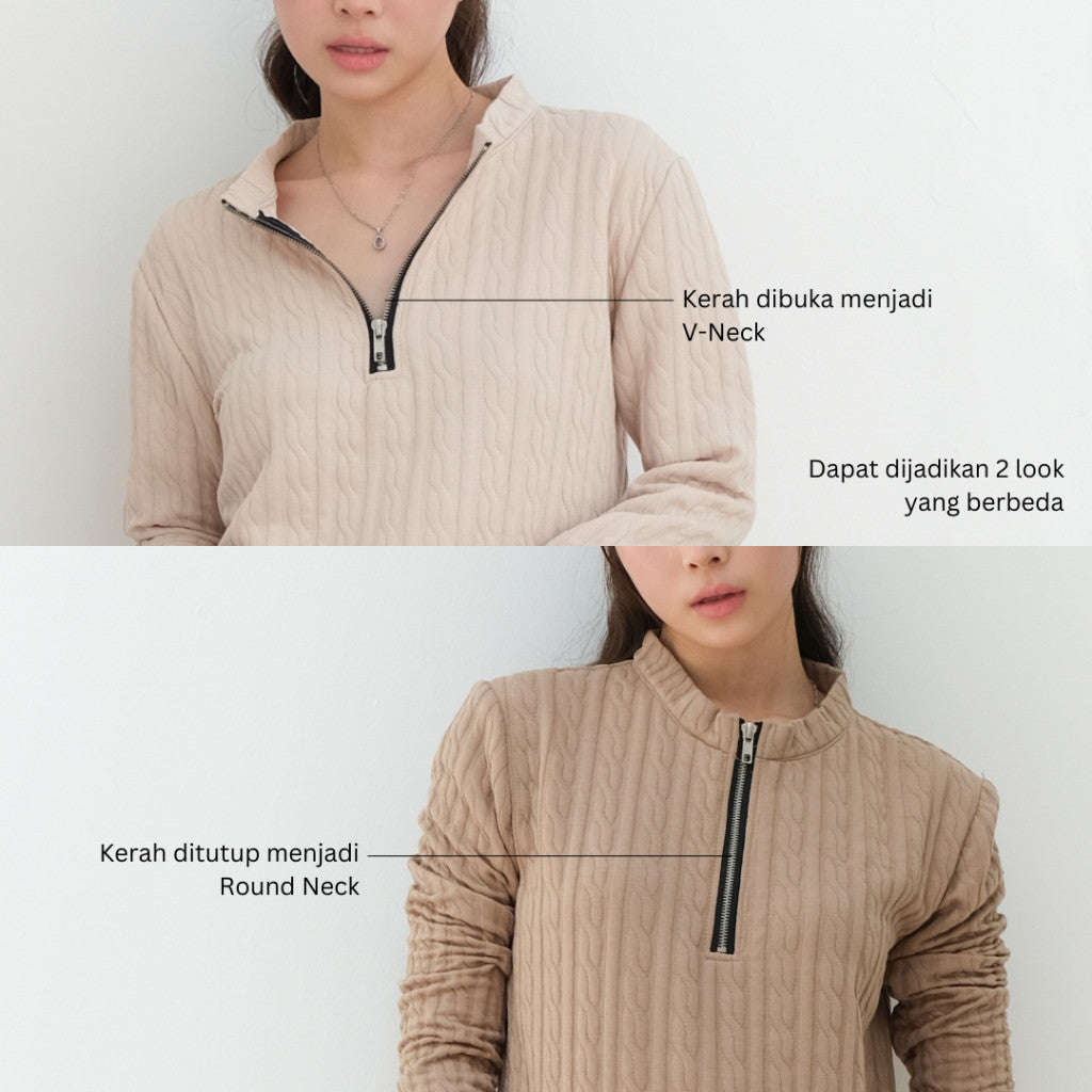 Cable Upper Zip Knit Sweater - SANVANINA Women.Sweater Rajut dengan tekstur Cable yang menggunakan bahan Premium Knit...