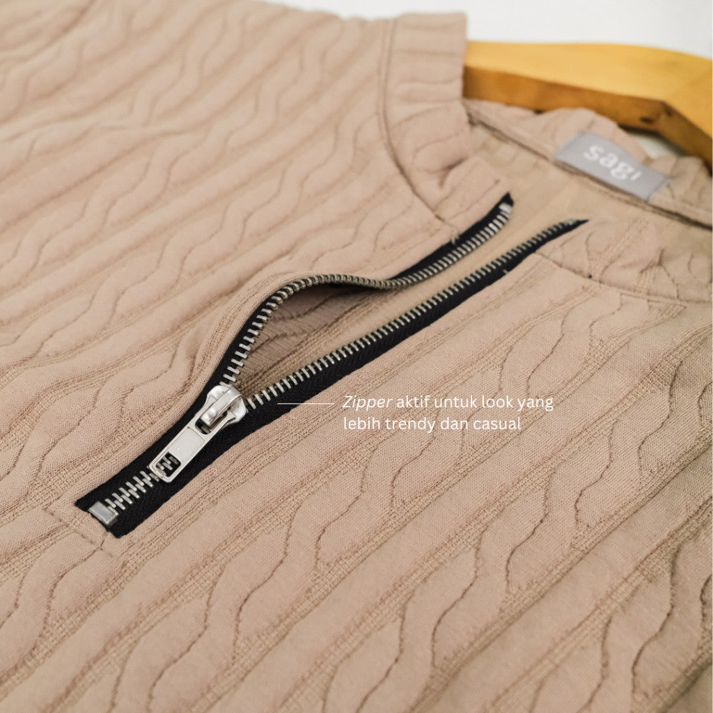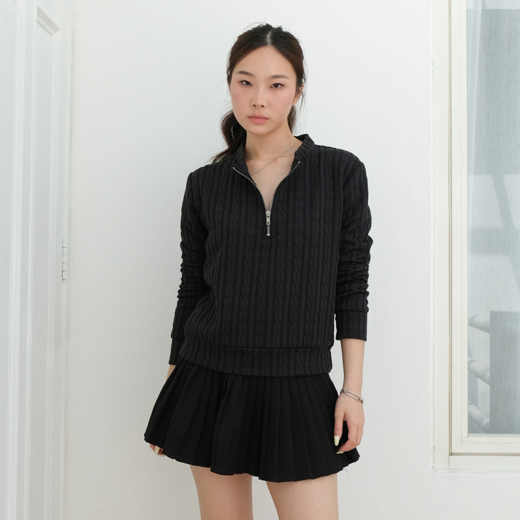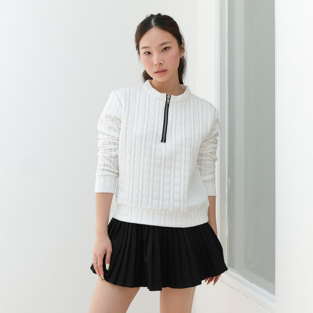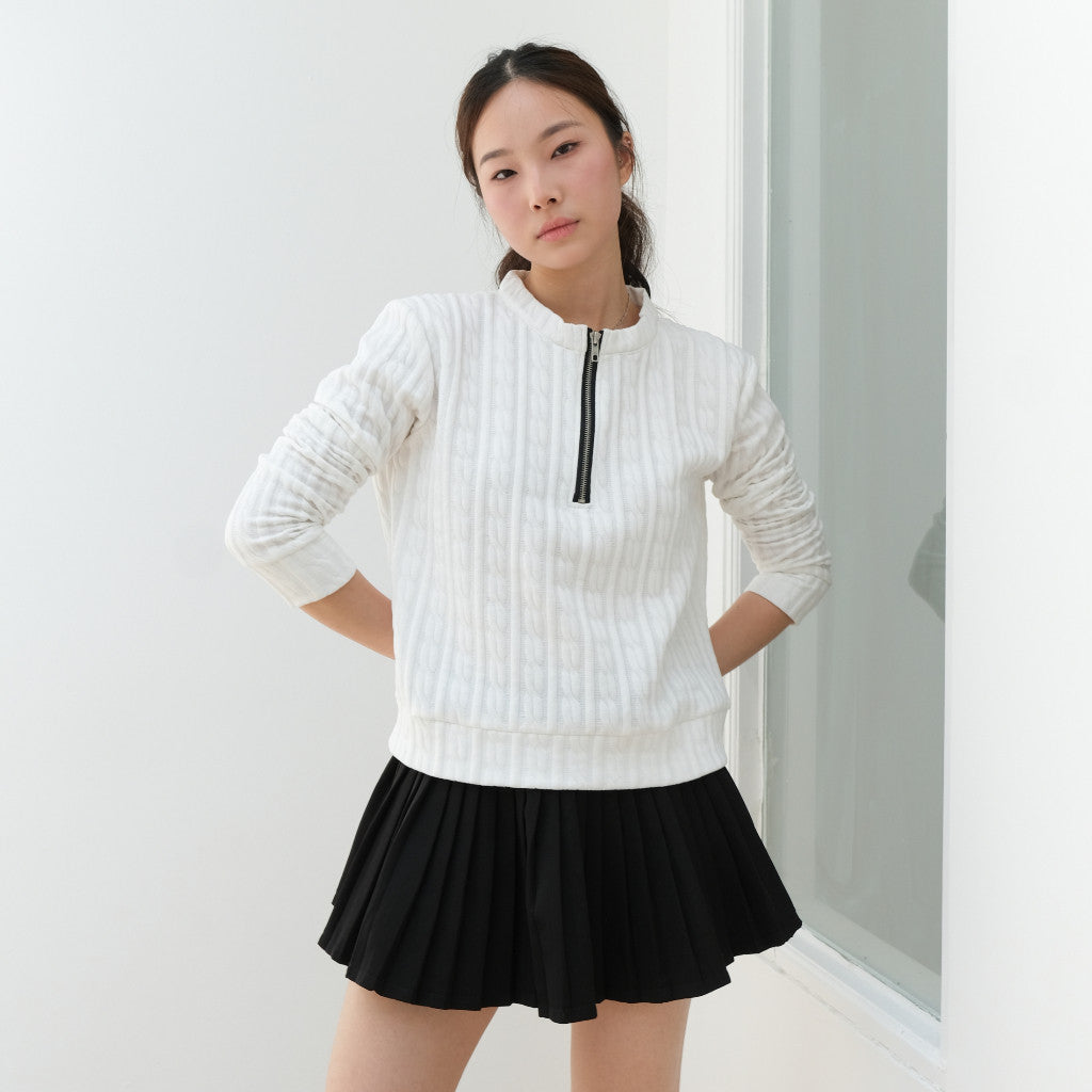 Cable Upper Zip Knit Sweater - SANVANINA Women.Sweater Rajut dengan tekstur Cable yang menggunakan bahan Premium Knit...