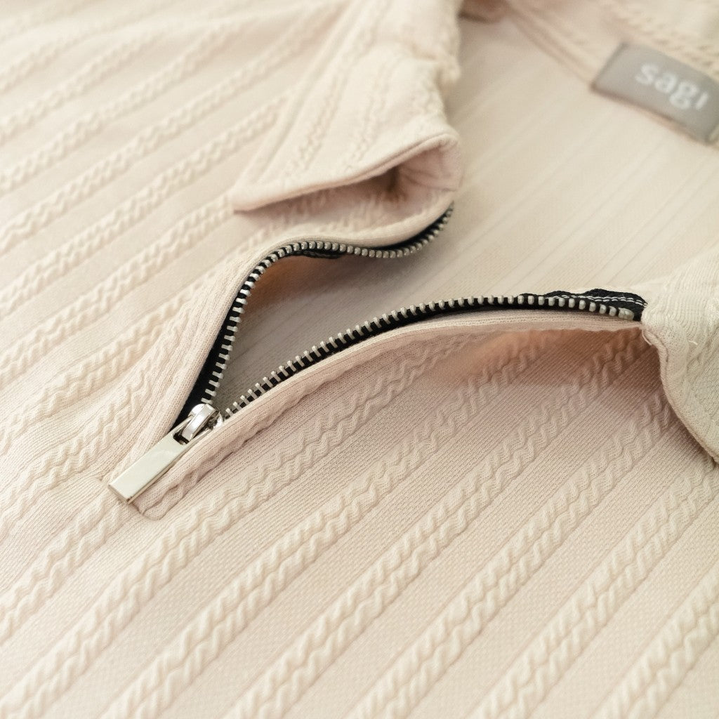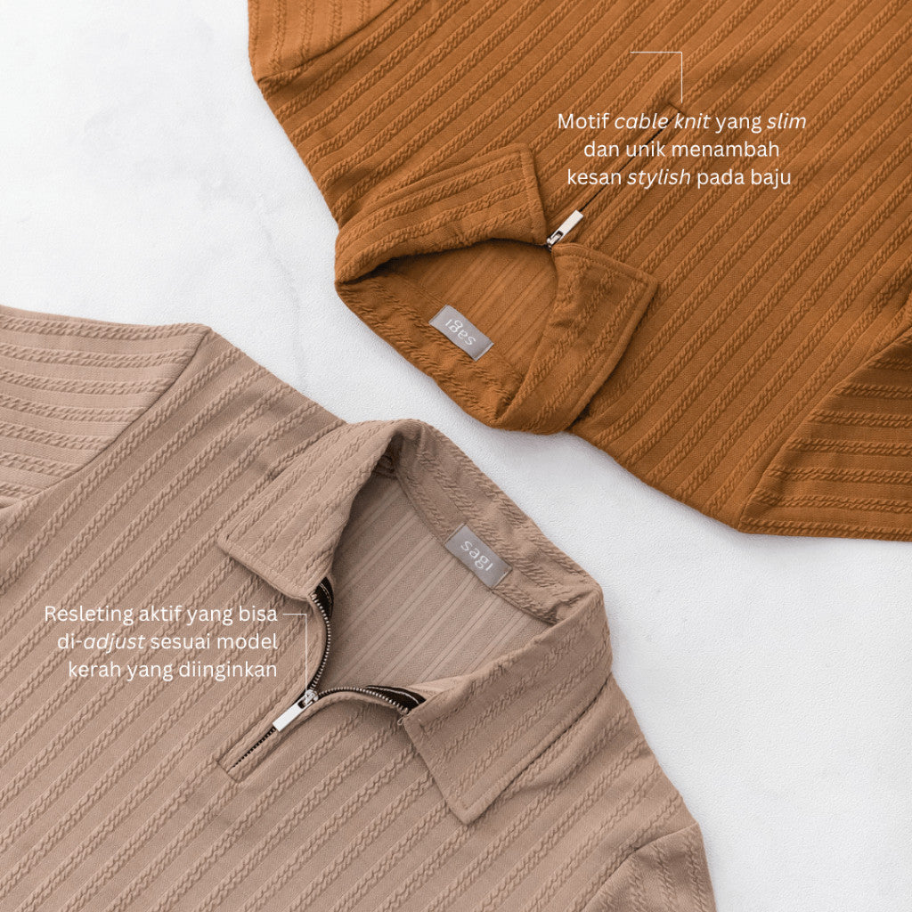 Cali Zip Knit Polo Shirt - SANVANINA Women . Kaus Polo berkerah dengan bahan Premium Knit yang lembut dan ringan. Desain polo klasik dengan detail rajutan unik dan slimming effect memberikan kesan stylish, modern, dan tampilan yang elegan namun santai dan cocok untuk setiap momen kamu. Terdapat resleting zipper di bagian dada yang membuat look lebih fashionable, warna netral yang mudah dipadukan dengan berbagai jenis bawahan. . Tersedia 5 varian warna : Deep Black | Seaweed Green | Caramel | Olive Brown | Ivory Beige . Keunggulan: • Terbuat dari bahan Premium Knit yang ringan, sejuk, dan menyerap keringat yang cocok dengan iklim di Indonesia. • Terdapat pattern slim rajut yang menambah aksen detail pada atasan sehingga tidak polos dan lebih stylish. • Cutting yang proporsional memberikan slimming effect bagi penggunanya. • Bahan Premium Knit yang lembut, halus, dan anti kusut sehingga memudahkan perawatan dan mudah dibawa untuk travelling. • Zipper atau resleting anti-keset dengan model yang modern dan fashionable, membuat look terlihat lebih stylish. • Dapat dipakai untuk berbagai acara mulai dari formal hingga casual. • Mudah dipadukan dengan berbagai bawahan, dan dapat dipakai dengan cara dimasukkan atau dikeluarkan. . Bahan : Premium Knit . Detail Ukuran Atasan: ALL SIZE Lingkar Dada : 100 cm Lingkar Ketiak : 44 cm Lingkar Lengan : 35 cm Lebar Bahu : 15 cm Panjang Lengan : 18 cm Panjang Baju : 55 cm *Toleransi: 1-2 cm . Saran Perawatan : Untuk menjaga pakaian tetap terawat, cuci pakaianmu jangan terlalu kasar, pisahkan pakaian bedasarkan warna, tambahkan pelembut, balik pakaian saat mencuci dan dijemur. Setrika dengan suhu sedang .