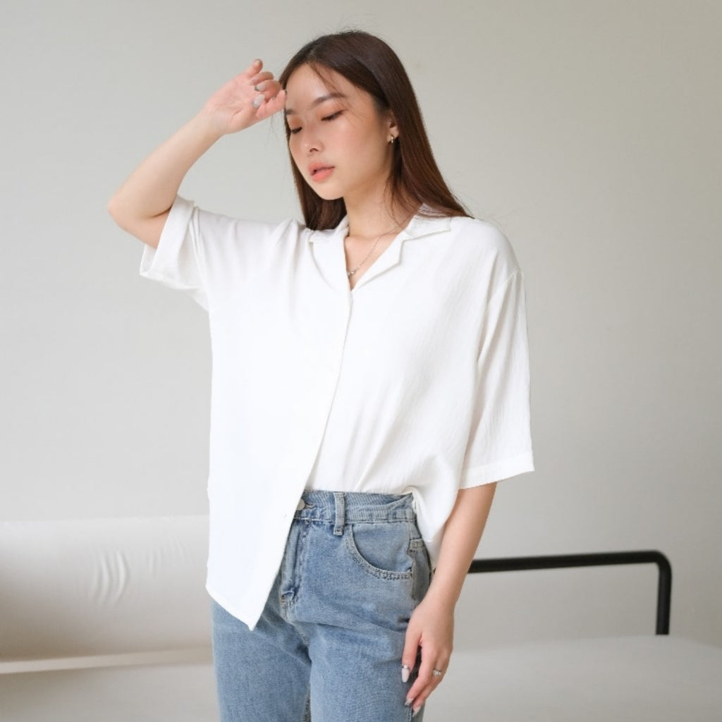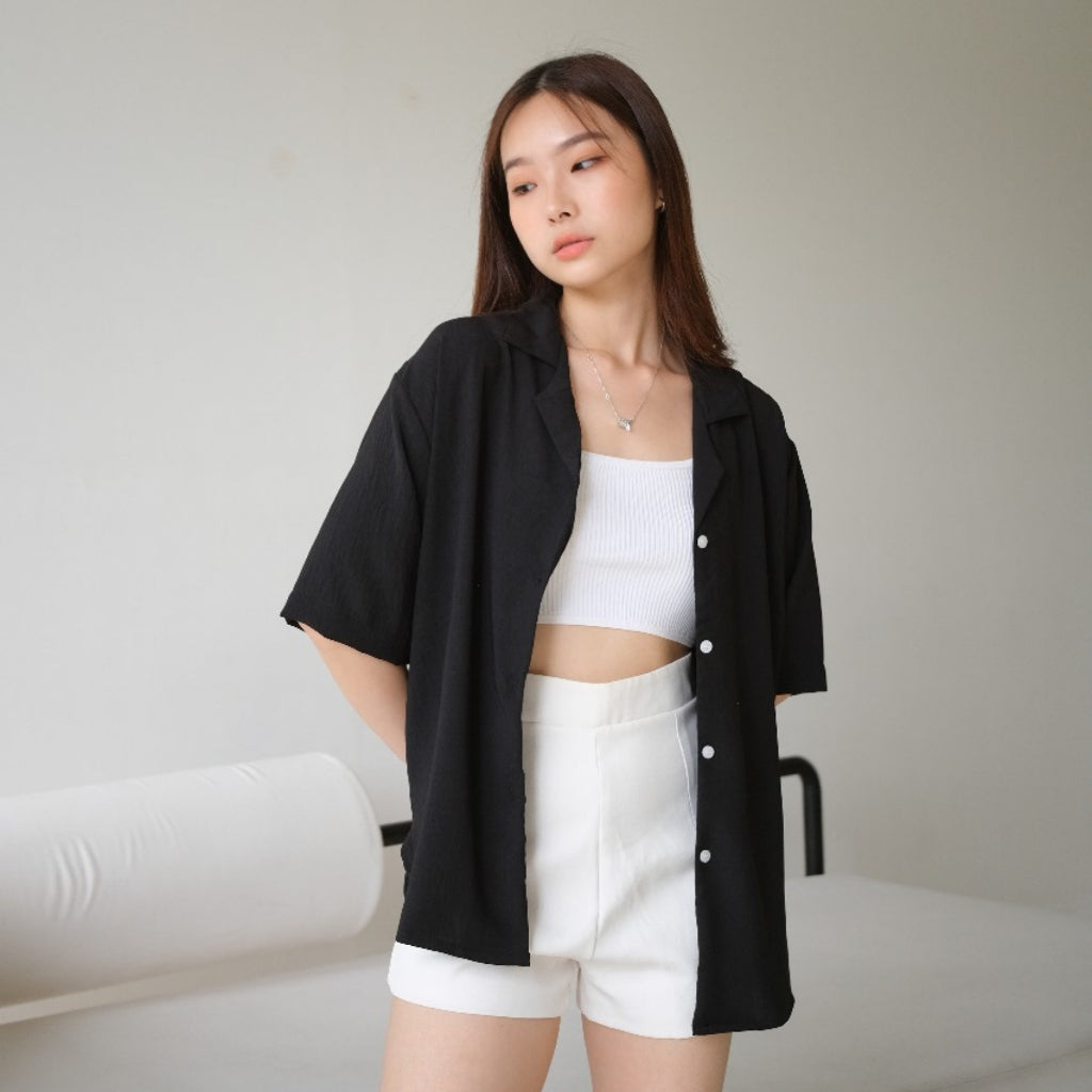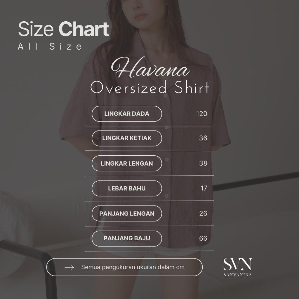 Havana Oversized Shirt - SANVANINA Women . Kemeja Havana yang rekomen ini terbuat dari bahan Soft Linen Crinkle, yang memberikan sentuhan lembut, sirkulasi udara yang maksimal, dan stretch. Cocok banget untuk pilihan anda beraktivitas santai maupun formal, Detail kemeja yang unik dan artistik, membuat kalian terlihat fresh dan fashionable. . Available in 10 Colors : Black | White | Sage Green | Lavender | Navy | Choco | Blush Pink | Olive Green | Mauve | Red Wne . Keunggulan Havana Oversized Shirt : - Menggunakan Bahan Lembut, Adem, Nyaman. - Cocok digunakan sebagai Outfit / Outer - Cocok dipadukan dengan Rok / Celana Panjang / Celana Pendek - Bisa digunakan dengan berbagai macam style - Cuttingan Oversize (bikin terlihat lebih slim) - Warna minimalis yang membuat tampilan kamu segar . Size Details : ALL SIZE Lingkar Dada (Bust) : 106 cm Lingkar Ketiak (Arm Hole) : 24 cm Pundak (Shoulder) : 15 cm Panjang Baju (Length) : 63 cm . Saran Perawatan : Untuk menjaga pakaian tetap terawat, cuci pakaianmu jangan terlalu kasar, pisahkan pakaian berdasarkan warna, tambahkan pelembut, balik pakaian saat mencuci dan dijemur. Disarankan dibalik ketika setrika.