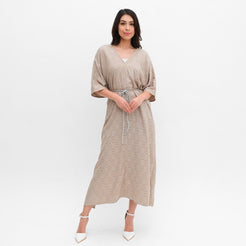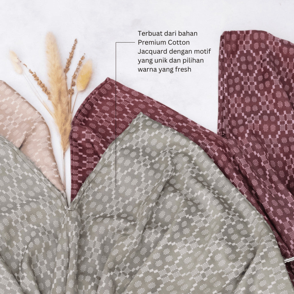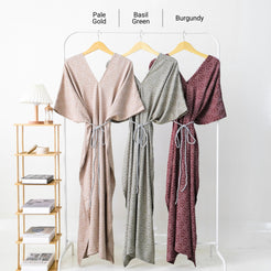 Manna Abaya Multiway Dress - Sagiofficial.id . Manna Abaya Multiway Dress berbahan Premium Cotton Jacquard merupakan gaun dengan model lengan batwing, dengan motif unik yang menambah kesan glamor dan elegan. Dapat digunakan untuk berbagai macam acara dari formal hingga casual terutama di bulan Ramadan, sehingga kamu tampil lebih mewah dan prima, serta percaya diri. Dapat dipakai dengan berbagai macam gaya, terdapat tali untuk mengikat bagian pinggang agar dapat menyesuaikan bentuk tubuh. . Tersedia 3 varian warna : Burgundy | Basil Green | Pale Gold . Keunggulan : - Terbuat dari bahan Premium Cotton Jacquard yang lembut dan ringan, sehingga cocok untuk digunakan sepanjang hari - Bahan Premium Cotton Jacquard terlihat mewah dan elegan karena tekstur dan motif yang unik, serta terlihat sedikit berkilau. - Detail motif yang menarik disertai warna yang fresh dan minimalis sehingga memberikan kesan stylish dan modern - Potongan yang memberikan kesan anggun dan feminin, serta potongan longgar sehingga mudah dipakai oleh berbagai jenis bentuk tubuh termasuk ibu hamil - Cutting yang pas membuat proporsi tubuh terlihat lebih slim dan jenjang - Dapat digunakan dengan berbagai macam gaya / multi-way, karena terdapat tali pinggang tambahan sehingga bisa diikatkan ke pinggang ataupun tidak untuk tampilan yang berbeda - Mudah dipadukan dengan berbagai macam aksesoris seperti hijab, jam tangan, perhiasan, serta tas dan berbagai sepatu - Dapat digunakan untuk couple dengan pasangan atau anggota keluarga pria dengan Manna Shanghai Shirt (terdapat di etalase SAGI Men) . Note: Panjang lengan ¼, bagi yang berhijab disarankan untuk tetap menggunakan manset. . Bahan : Premium Cotton Jacquard . Detail Ukuran: ALL SIZE Lingkar Dada : 138 cm Lingkar Ketiak : 48 cm Panjang Lengan : 44 cm Panjang Baju : 123 cm *Toleransi: 1-2 cm . Saran Perawatan : Untuk menjaga pakaian tetap terawat, cuci pakaianmu jangan terlalu kasar, pisahkan pakaian bedasarkan warna, tambahkan pelembut, balik pakaian saat mencuci dan dijemur. Setrika dengan suhu sedang . PENGIRIMAN : SENIN - MINGGU Proud to wear local brand SANVANINA #YourBetterOutfit . #EidmazingRamadan #AbayaManna