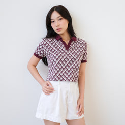 Atasan crop berbahan Premium Knit ini hadir bagi yang ingin tampil beda dengan effortless. Motif rajut unik yang mencuri perhatian berpadu dengan bahan yang ringan, lentur, dan nyaman dipakai seharian. Desainnya yang simpel tapi tetap bold memberikan kesan chic dan elegan. Pilihan sempurna bagi yang ingin tampil percaya diri, stylish, namun tetap praktis. Dapat dipakai untuk berbagai kegiatan olahraga seperti tennis, padel, dan golf.