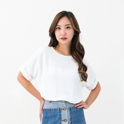 SANVANINA Women - Savina Loose Blouse Material : Available in 11 Colors : Black | White | Sage Green | Lavender | Navy | Choco | Blush Pink | Olive Green | Mauve | Red Wine | Steel Blue